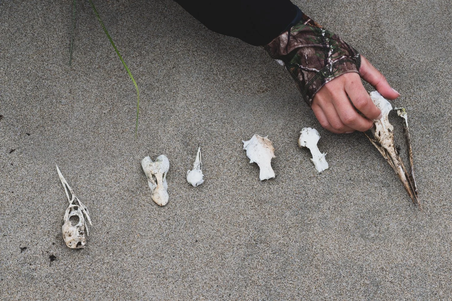 Near the coyote well, the students located deer prints and a variety of bird skulls, possibly scavenged by a raccoon and brought back to the privacy of the dunes